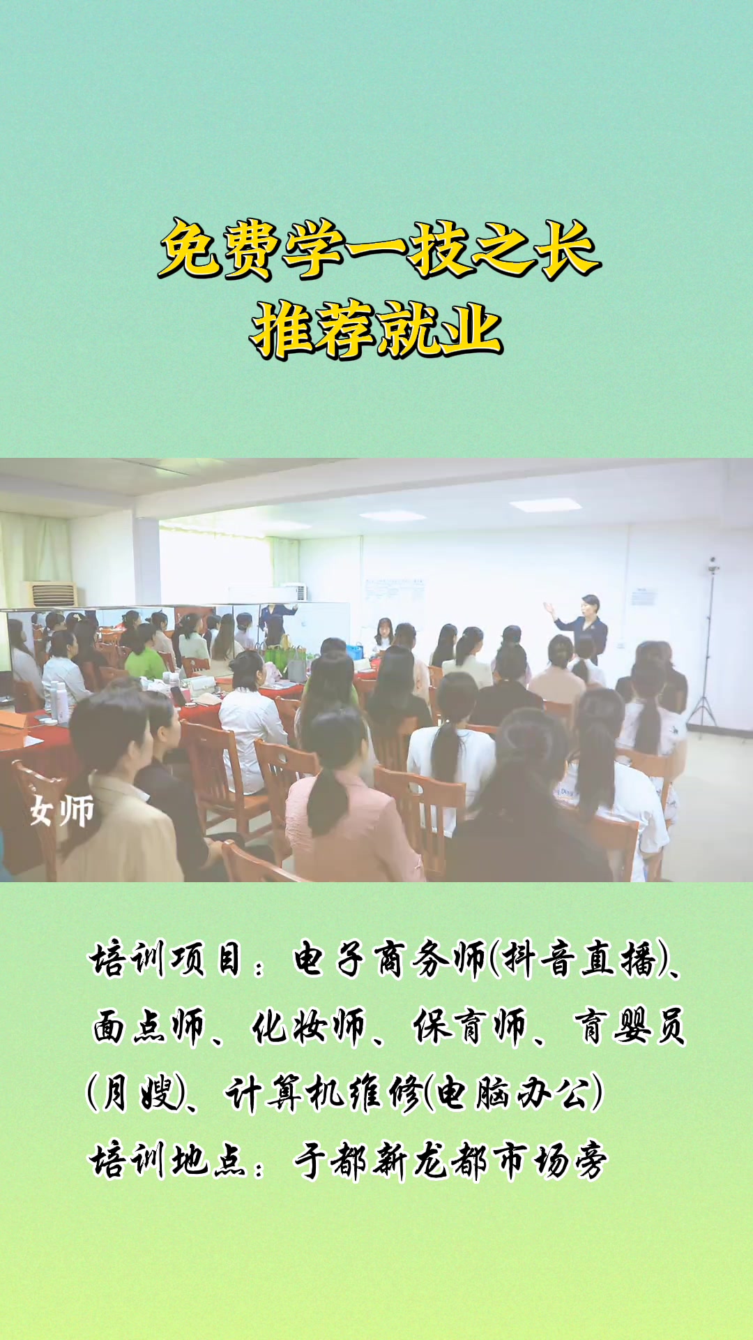 于都县汇技能培训中心简介 于都县汇技能培训中心是一家致力于为广大市民提供多元化、专业化技能培训的机构。我们始终秉承“授人以渔,技能立身”的教育理念,致力于为广大学员提供全面、专业的技能培训服务。中心拥有一支经验丰富、教学实力雄厚的师资队伍,以及先进的教学设备和舒适的学习环境,确保学员能够在轻松愉快的氛围中掌握技能,实现自我提升。 一、主要业务 ◆计算机培训:涵盖计算机基础操作、办公软件、文字处理、电子表格、PPT、应用与维修,帮助学员掌握计算机技能,适应信息化时代的发展需求。 ◆电子商务培训:针对电子商务领域的技能需求,讲解抖音、视频号、拼多多、淘宝等主流平台机制,拍摄剪辑、视频带货、文案策划、直播实操、变现方式、如何蹭热点、话术训练、网店运营、网络营销、客户服务等课程,助力学员在电商领域实现创业梦想。 ◆化妆师培训:教授日常妆、新娘妆、舞台妆等,从基础化妆技巧到专业化妆造型,为学员提供全面的化妆技能培训,满足美容、婚庆、影视等行业对化妆人才的需求。 ◆面点技能培训:传授面点和中式糕点制作技艺,如蛋挞、泡芙、蛋糕、花卷、馒头、酸奶麻花、桃酥饼、麻球、面包、雪媚娘、芒果千层以及现代烘焙技术,帮助学员掌握面点制作技能,满足市场需求。 ◆育婴、保育技能培训:针对婴幼儿照护需求,提供育婴、保育专业知识培训,帮助学员掌握婴幼儿照护技能,为家庭和社会提供专业照护服务。 ◆家政服务技能培训:涵盖家庭清洁、烹饪、衣物护理等家政服务技能,帮助学员提升家政服务水平,满足家庭需求。 ◆老人护理技能培训:针对老年人照护需求,提供护理知识、康复技能等方面的培训,帮助学员掌握老人护理技能,为老年人提供专业照护服务。 二、教学特色 ○实践教学:中心注重实践教学环节,通过模拟操作、实地实习等方式,帮助学员将所学知识应用于实际工作中。 ○个性化指导:中心提供个性化指导服务,根据学员的兴趣和特长制定合适的培训计划,确保学员能够在短时间内取得显著进步。 ○就业指导:中心与多家企业建立合作关系,为学员提供就业指导和推荐服务,帮助学员顺利实现就业。 未来,我们将不断优化课程设置和教学方法,提升教学质量和服务水平,积极拓展业务领域,与更多企业和社会组织建立合作关系,为学员提供更多的实践机会和就业渠道。
